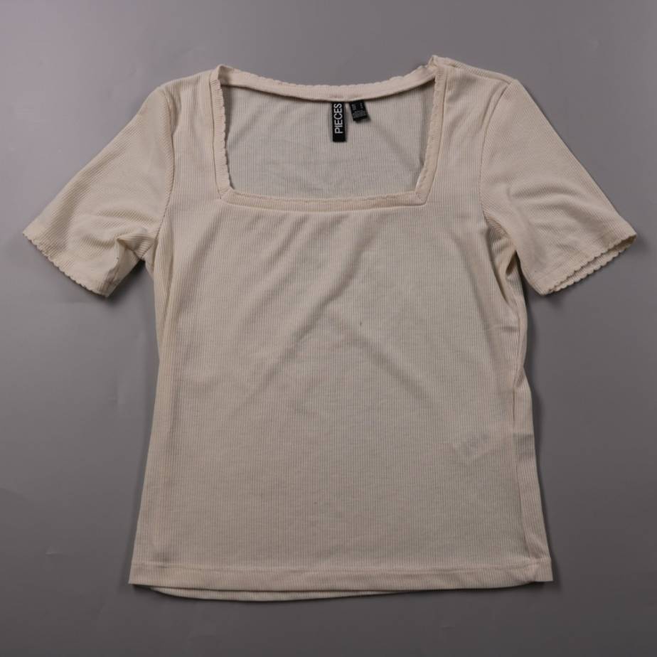 Футболка Pieces молочного цвета из мягкого трикотажа в рубчик, с квадратным вырезом и коротким рукавом. Подойдёт для повседневных образов и как базовый слой под жакет или кардиган. Материал тянется и комфортно садится по фигуре.