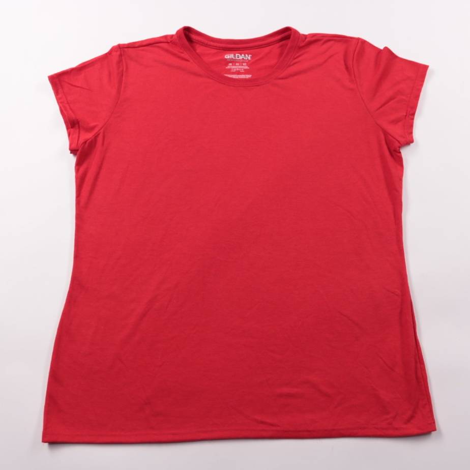 Женская футболка Gildan Performance красного цвета, лёгкая и быстро сохнет. Подойдёт для тренировок, прогулок и повседневной носки. Практична в уходе: хорошо переносит стирку и почти не мнётся.