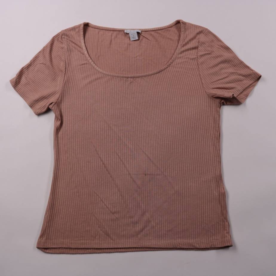 Женская футболка Amisu из мягкого трикотажа в рубчик с округлым вырезом и коротким рукавом. Подойдёт для повседневных образов и как базовый слой под жакет или кардиган. Эластичная ткань хорошо тянется и комфортно садится по фигуре.