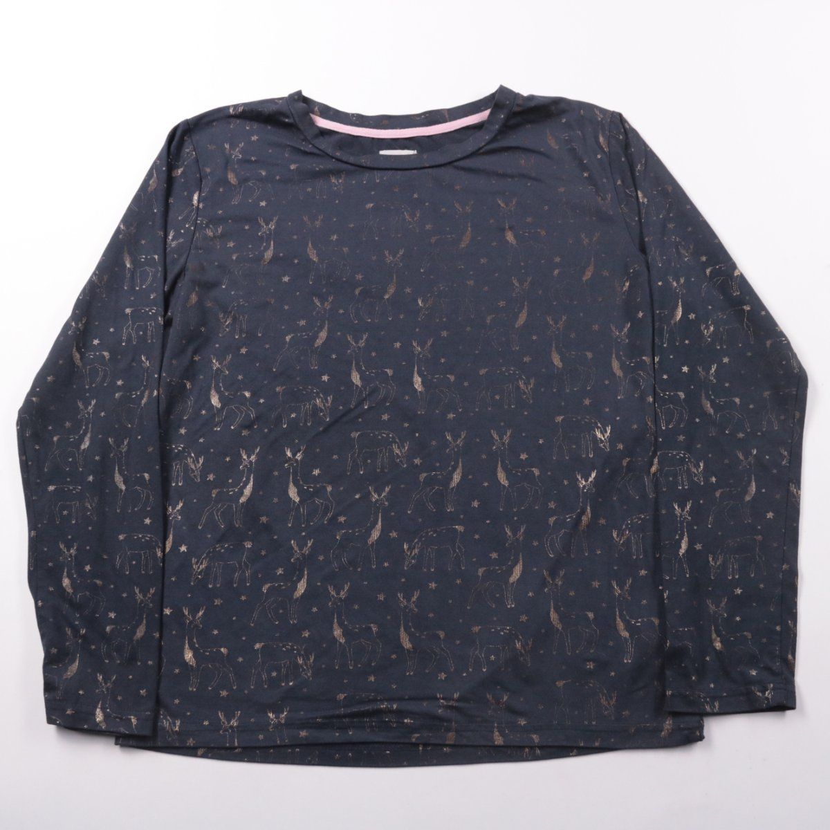 Женский лонгслив Chelsea Peers тёмно-синего цвета с принтом оленей и звёзд. Подойдёт для дома, сна и уютных повседневных образов в прохладную погоду. Мягкий трикотаж с эластаном хорошо тянется и комфортно сидит.