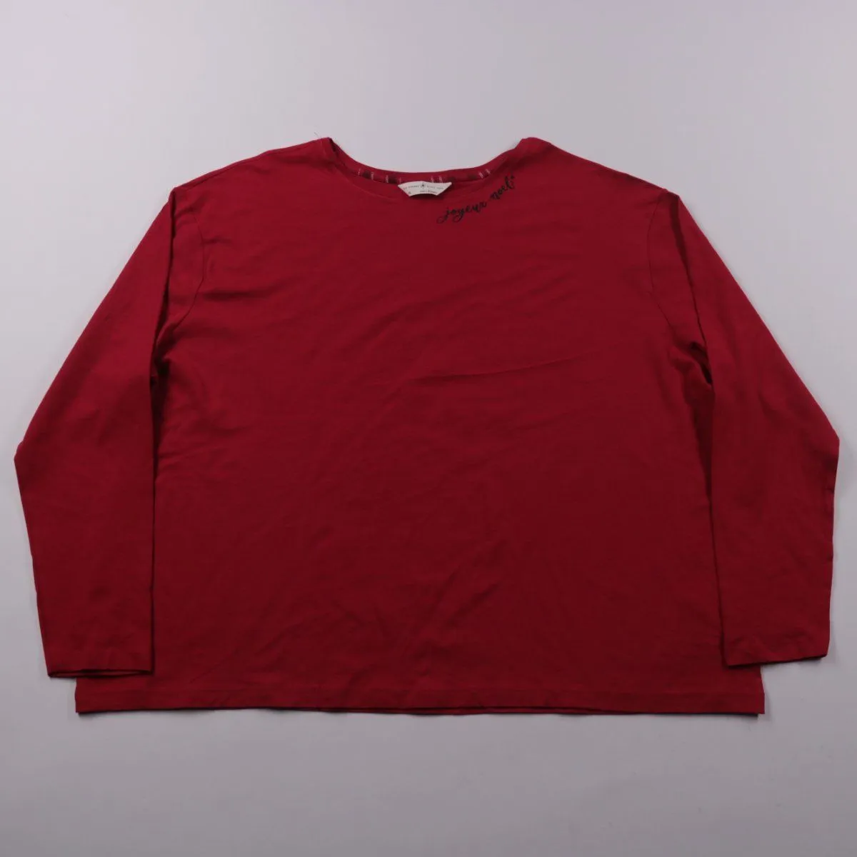 Женский лонгслив Day Dreams Duvet Days бордового цвета с круглым вырезом и небольшим принтом у горловины. Подойдёт для повседневных образов и как базовый слой в прохладную погоду. Натуральный хлопок приятен к телу и хорошо дышит.