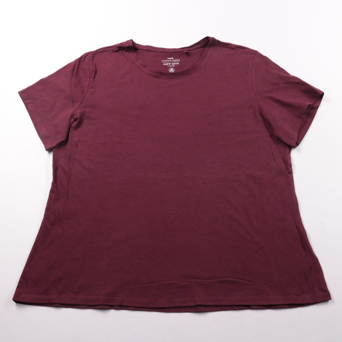 Женская футболка George Everyday Basics с круглым вырезом (crew neck) в бордовом цвете. Подойдёт для повседневных образов и базового гардероба, ткань слегка тянется. Практичный вариант: мягкий хлопковый трикотаж удобно носить и легко сочетать с джинсами и юбками.