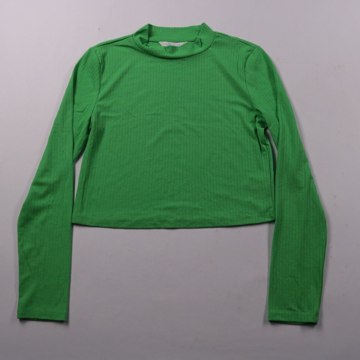 Женский лонгслив Primark из ребристого трикотажа ярко‑зелёного цвета, укороченный крой. Подойдёт для повседневных образов и как базовый слой в прохладную погоду. Тянущаяся ткань комфортно садится по фигуре и не сковывает движения.