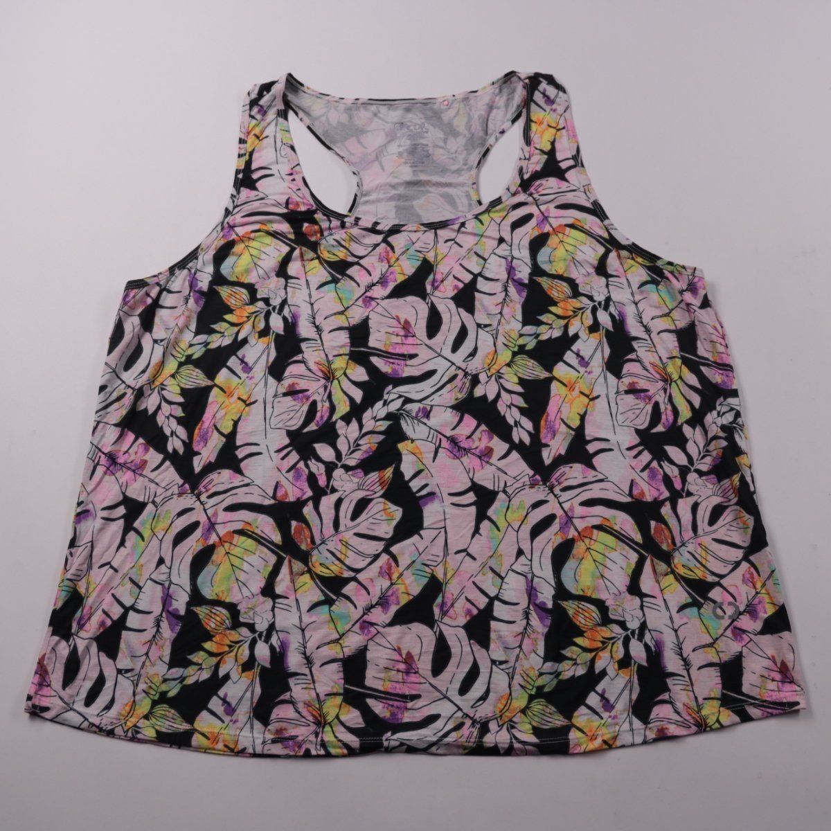 Женская майка Circuit с вырезом-борцовкой и принтом с листьями на тёмном фоне. Подойдёт для тренировок и повседневной носки в тёплую погоду. Материал тянется и быстро сохнет, поэтому её удобно брать с собой в поездки.