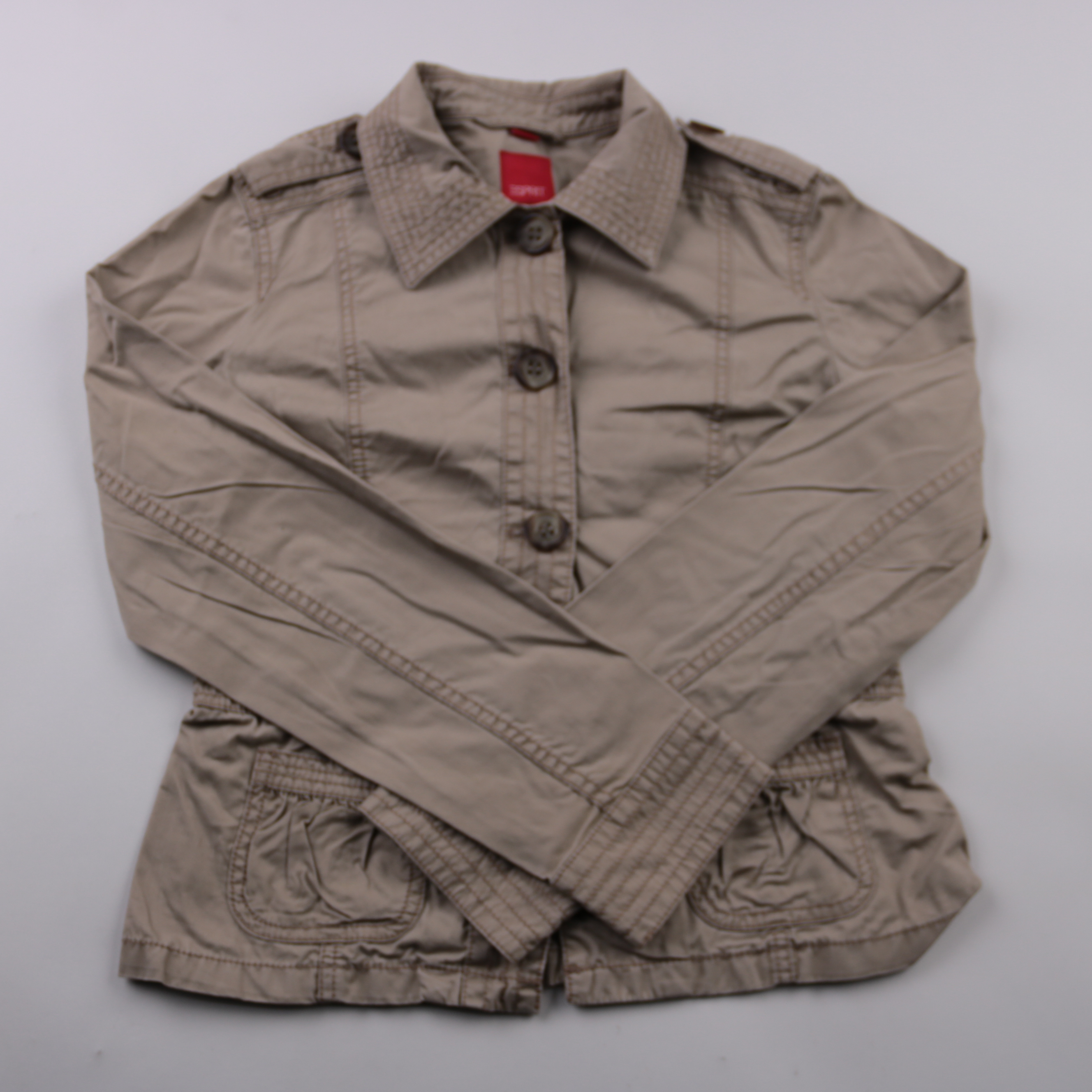Лёгкая куртка Esprit из хлопка в спокойном бежевом оттенке, с воротником и крупными пуговицами. Подойдёт для весны и прохладного лета, хорошо смотрится с джинсами и повседневной обувью. Практичные накладные карманы и удобная посадка делают её комфортно...