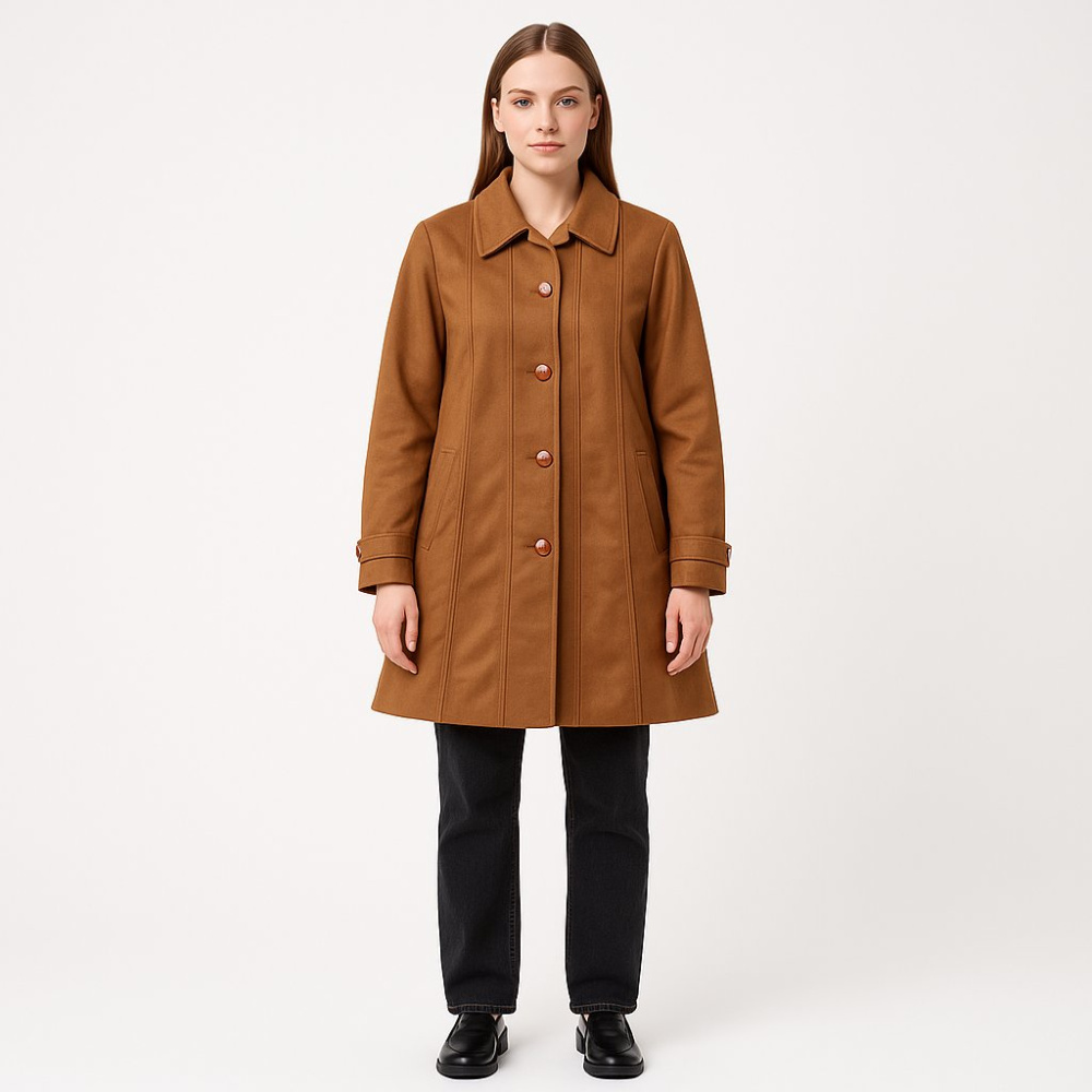 Женское пальто Vingt Miel в коричневом цвете с застёжкой на пуговицы и отложным воротником. Подойдёт для повседневной носки в прохладную погоду весной и осенью, легко сочетается с джинсами и ботинками. Практичные карманы и плотная ткань делают его удоб...