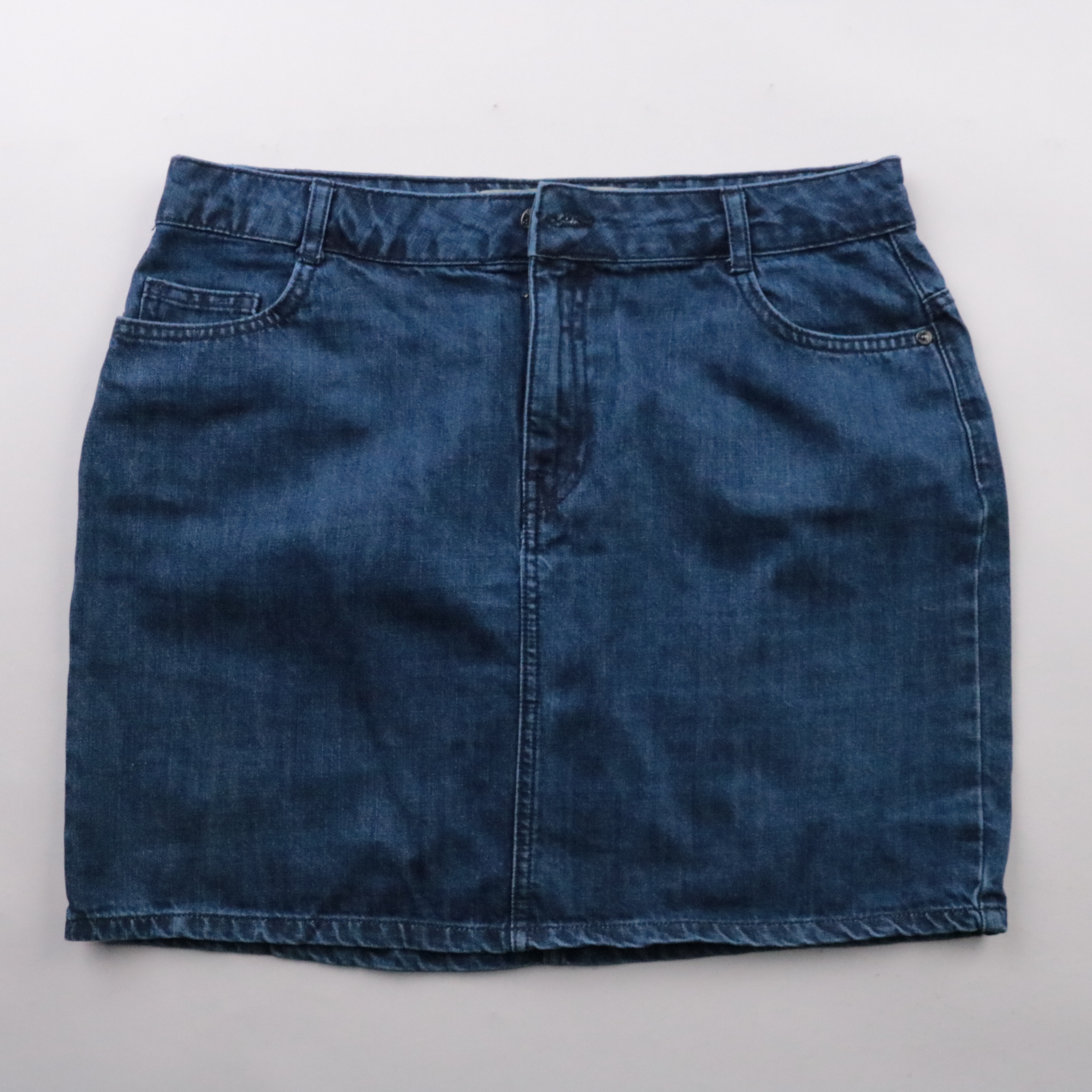 Джинсовая юбка Denim Co. синего цвета с классическими карманами и прямым кроем. Подойдёт для повседневных образов с футболками, рубашками и свитерами в любое время года. Плотный хлопковый деним хорошо держит форму и удобен в носке.