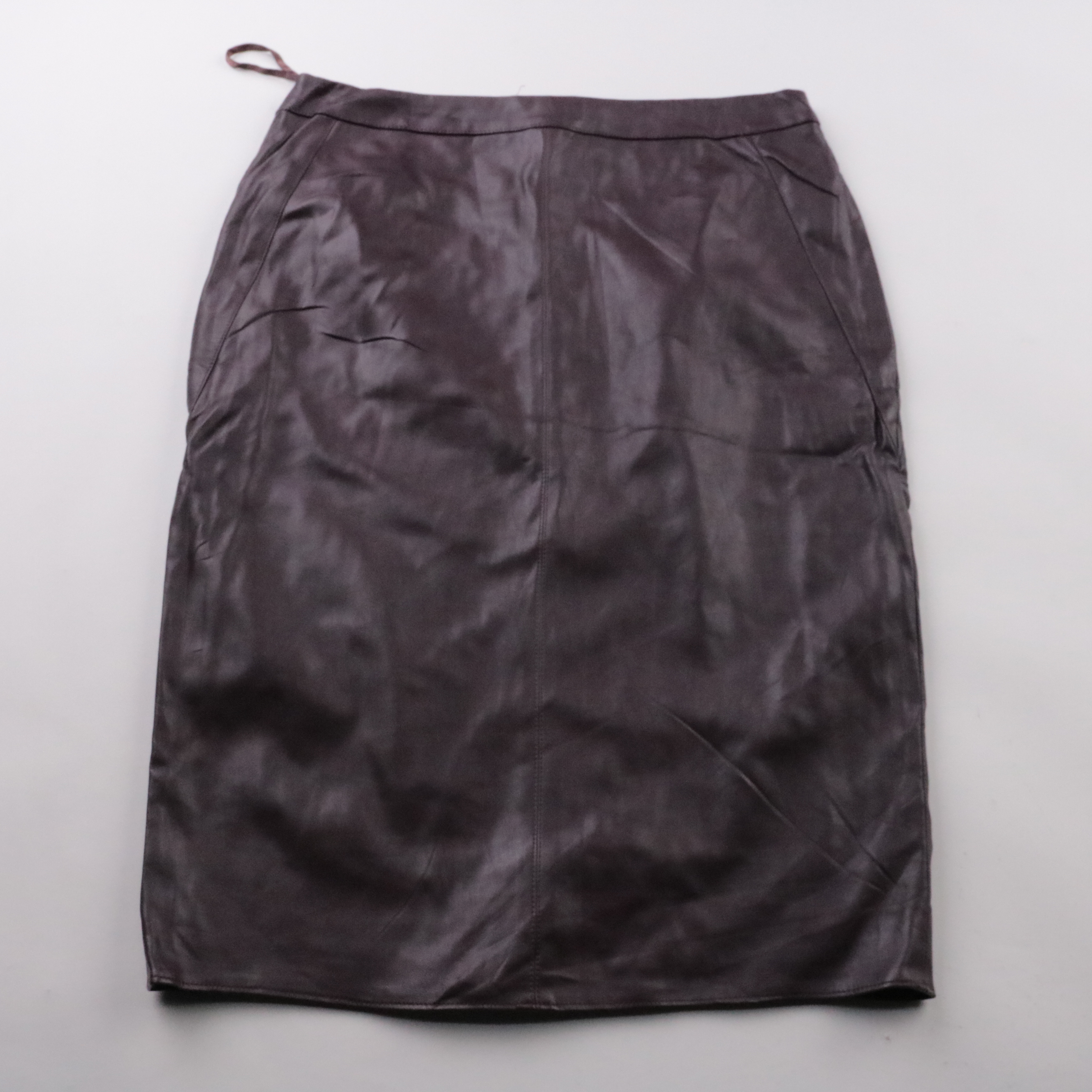 Юбка Dunnes из ткани с покрытием под кожу, цвет бургунди, прямого силуэта с карманами. Подойдёт для офиса и на каждый день, легко сочетается с базовыми водолазками и рубашками. Материал практичный и проще в уходе, чем натуральная кожа.