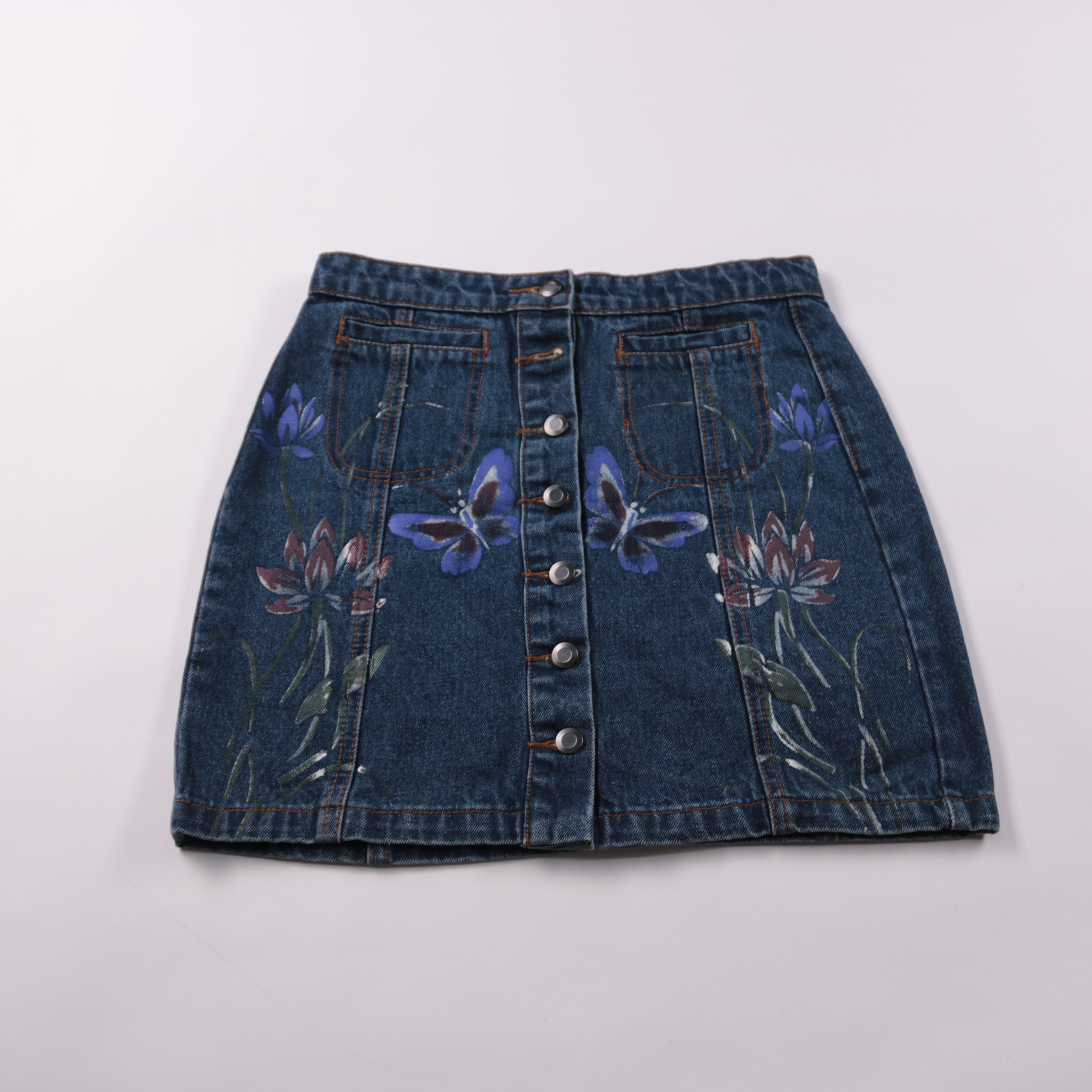 Джинсовая юбка Boohoo Denim с застёжкой на пуговицы и цветочным принтом. Подойдёт для летних повседневных образов с футболкой или топом и кедами. Плотный деним хорошо держит форму и удобен в носке.