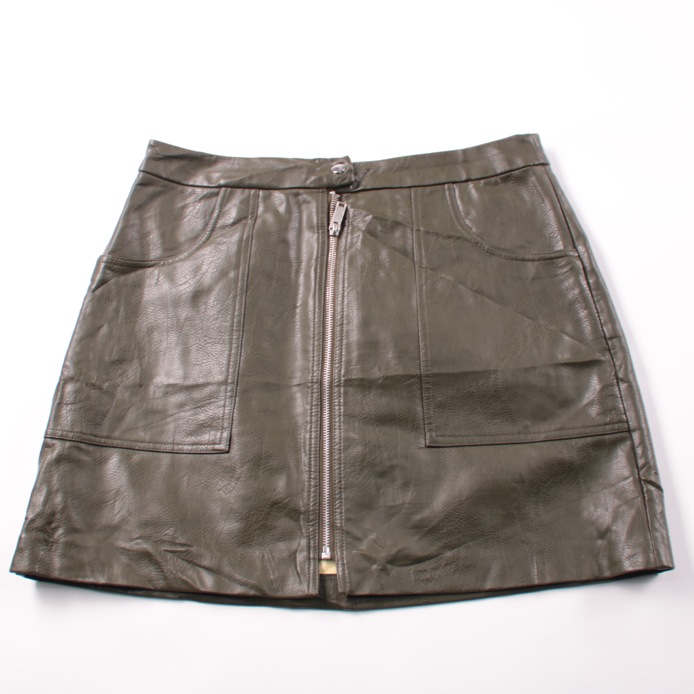Юбка Stradivarius из эко-кожи с центральной молнией и накладными карманами. Подойдёт для повседневных образов и на выход в прохладную погоду. Практичный материал легко протирается и хорошо держит форму.