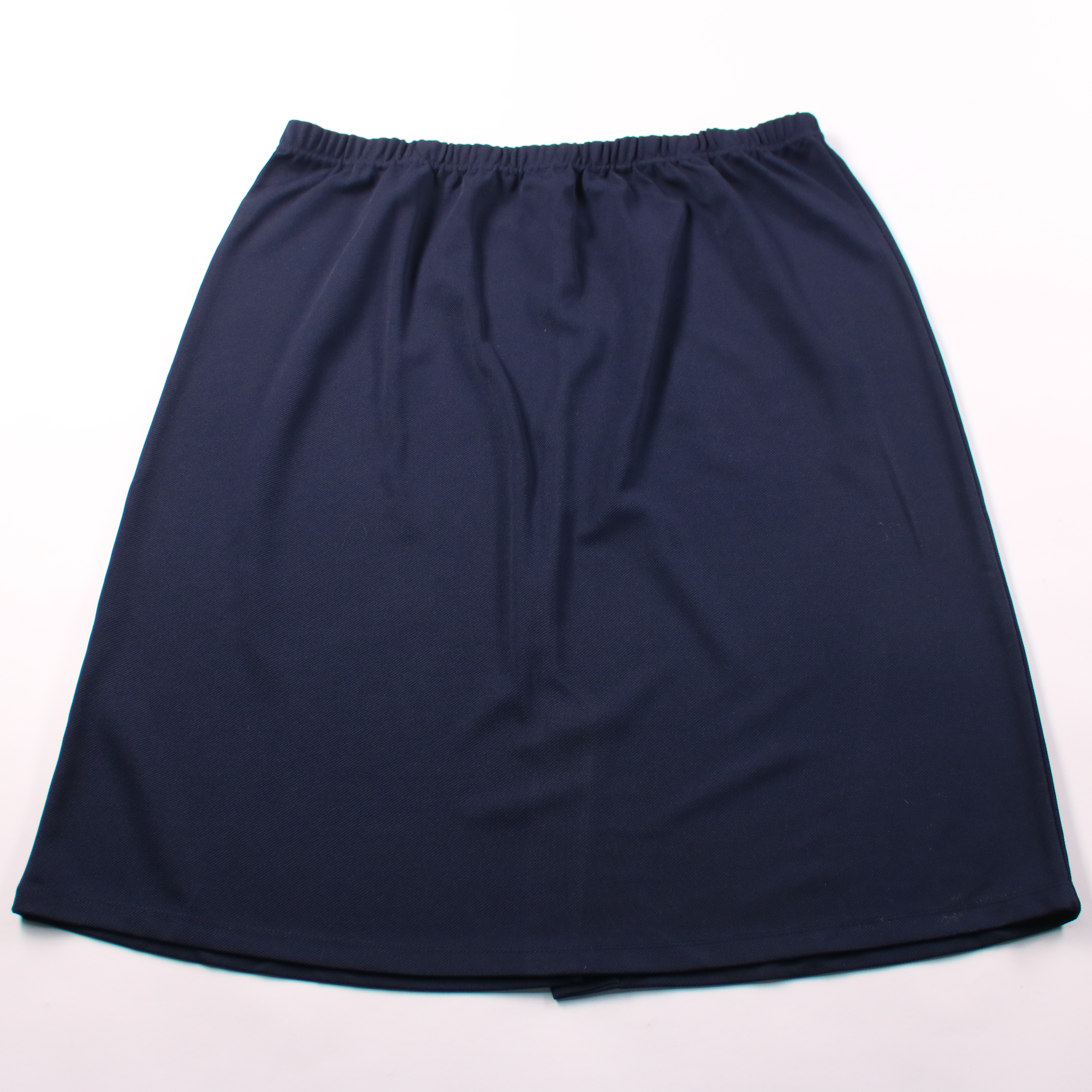 Юбка Daxon тёмно-синего цвета, прямого силуэта, с эластичным поясом. Подойдёт для офиса и повседневных образов, легко сочетается с блузками и трикотажем. Практичный материал почти не мнётся и прост в уходе.
