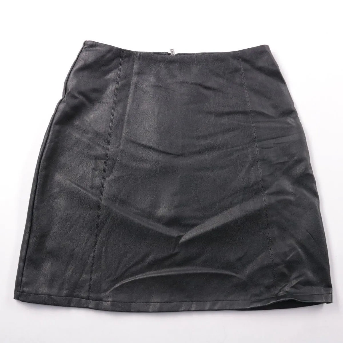 Юбка Primark из экокожи чёрного цвета, короткая, с молнией сзади. Подойдёт для повседневных образов и выхода вечером, легко сочетается с рубашкой или свитером. Материал практичный — протирается влажной салфеткой и быстро приводитcя в порядок.