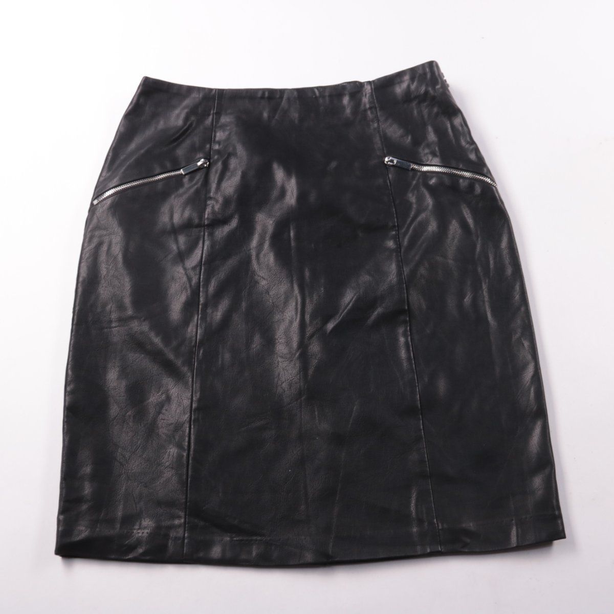 Юбка New Look из экокожи чёрного цвета с декоративными молниями спереди. Подойдёт для повседневных образов и вечерних выходов в прохладную погоду. Материал практичный — легко протирается и держит форму.